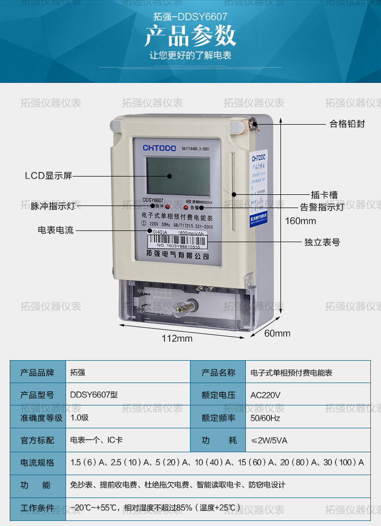 DDSY6607型电子式单相预付费电能表,采用先进的专用集成电路设计,全自动表面贴装(SMT)生产工艺制造。电能表的线路设计和元器件选择以较大的环境允差为依据,可保证整机长期稳定工作,高精度、高过载、低功耗,可靠性能高。采用符合国际标准的先进的智能IC卡技术实现预付费方式,内置磁保持继电器。通过控制继电器实现控制负载的通与断,实现督促用户先买电后用电的功能。